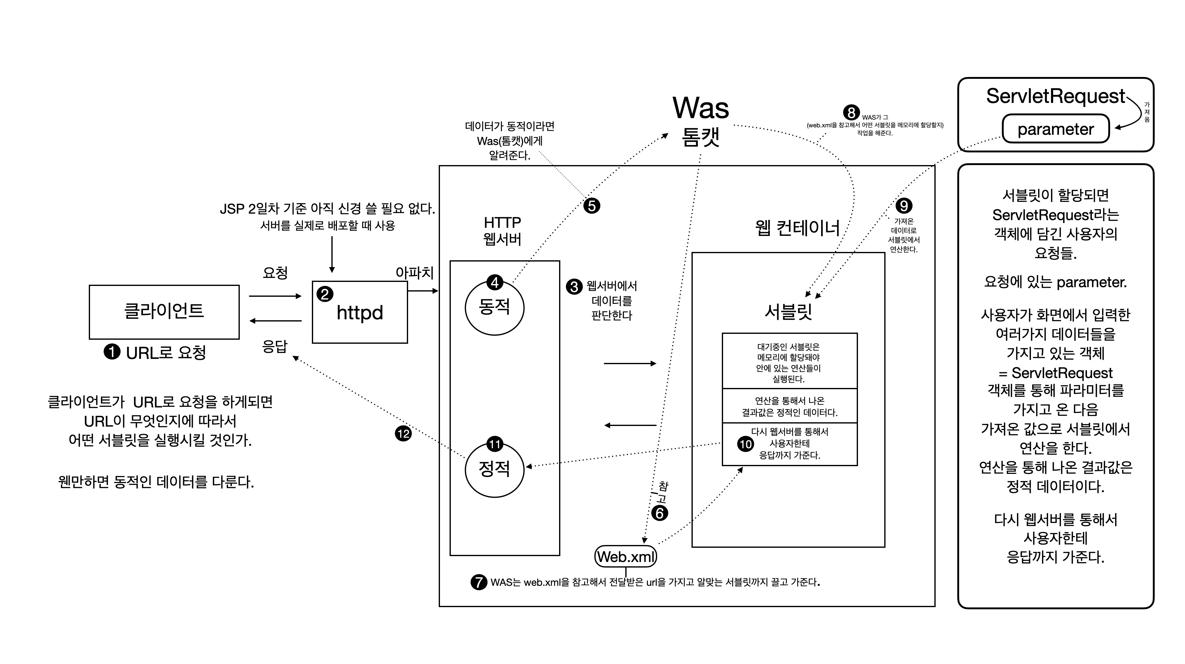동적 데이터라면 웹 컨테이너에 요청을 보냅니다.