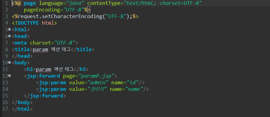 액션 태그는 XML형식은 <jsp: />를 사용합니다.