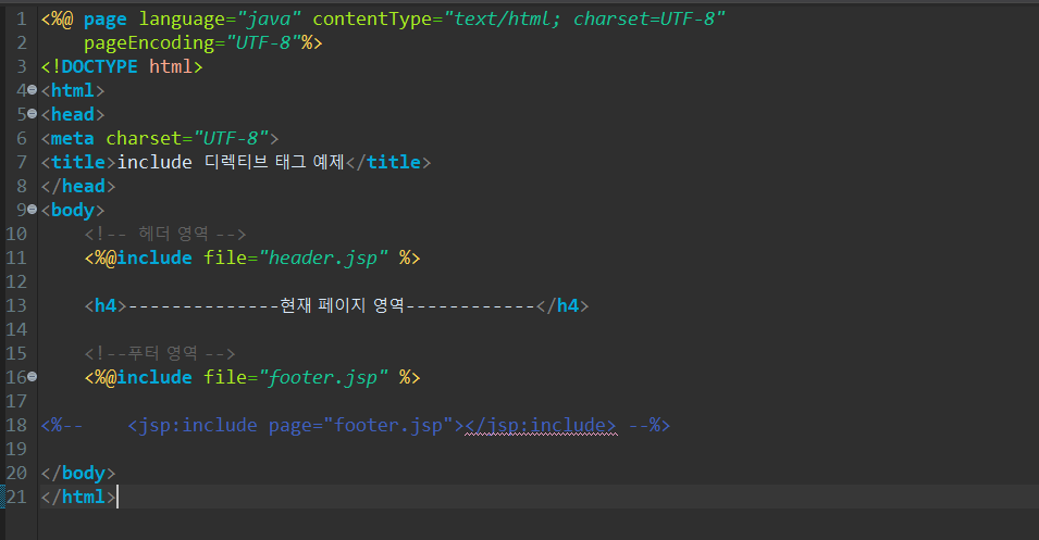 위와 같이 헤더와 푸터부분에 include 디렉티브 태그를 썻을 경우,