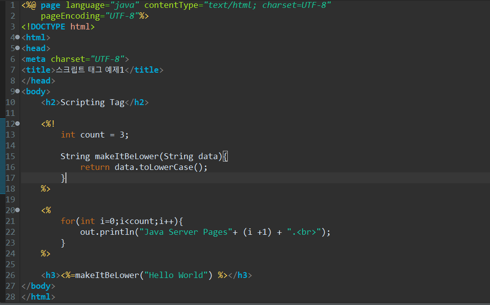 2. 스크립틀릿(scriptlet) : <% %>