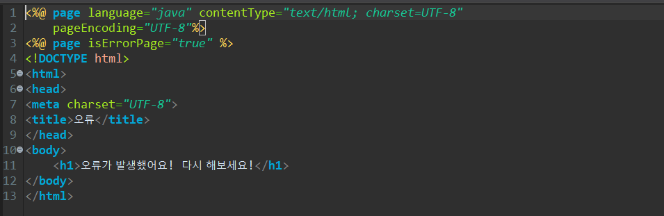 isErrorPage키워드로 에러페이지 설정을 하였습니다.