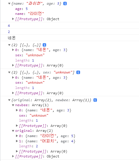 friends["newbee"] = [friends["newbee"],{name: "콘" ,age: 2}];