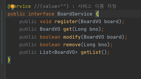 비지니스 영역을 담당하는 인터페이스는 xxxService,