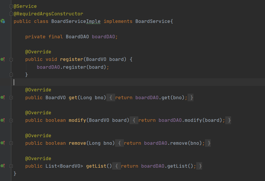 - Controller에 의해 호출되어 실제 비즈니스 로직과 트랜잭션을 처리합니다.