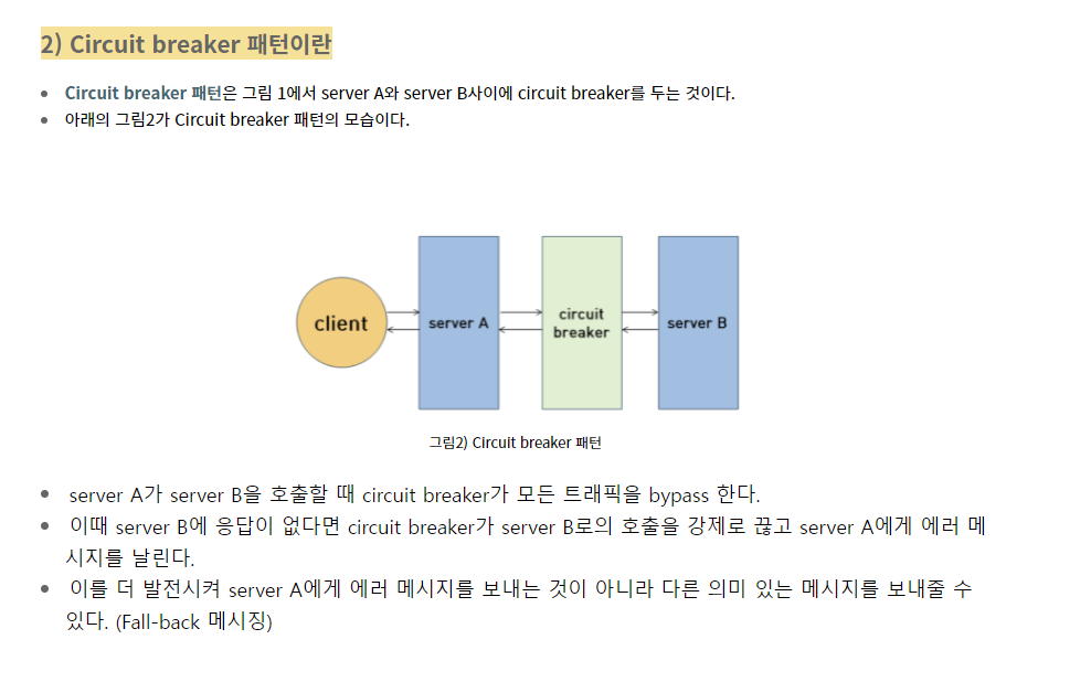 - 서킷 브레이커는 장애가 생겼을 때 최소한의 기본 서비스를 제공하는 데 중요한 역할을 한다.