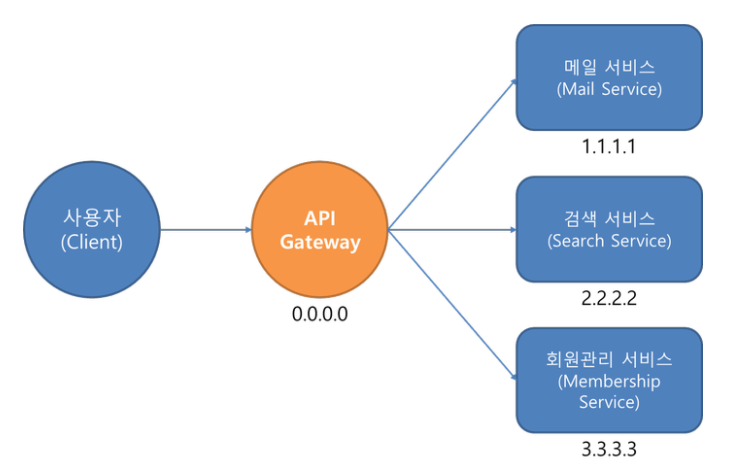 - API 게이트웨이는 서비스 앞단에서 모든 API 서버들의 엔드포인트(URL)를 단일화 해주는 또 다른 서버