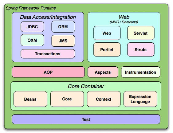 스프링 프레임워크는 20개 이상의 서로 다른 모듈을 갖고 있는 고도화된 모듈이다.