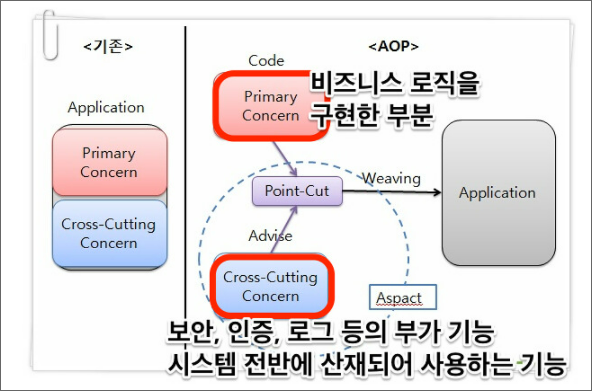 이를 가능케 하는 프로그래밍 패러다임을 AOP(aspect-oriented programming, 관점 지향 프로그래밍)라 한다.