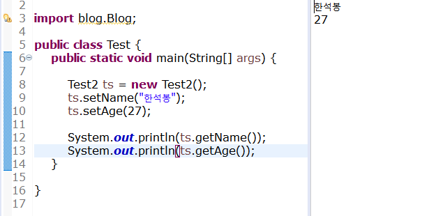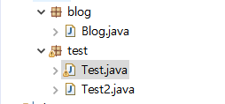 다른 패키지에서 Blog클래스와 Test클래스를 만들고 사용을 해보겠습니다.