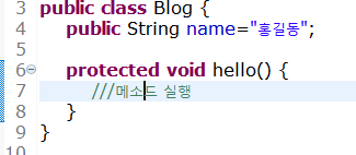 그러나 Blog클래스를 상속받으면 hello메소드를 사용 할 수 있습니다.