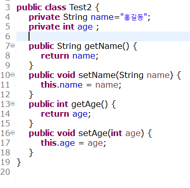 이렇게 Getter, Setter 메소드가 생성이 되는데요,