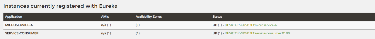 - 유레카 서버에 등록된 마인크로서비스A 인스턴스를 사용하도록 서비스 소비자 마이크로서비스 업데이트
