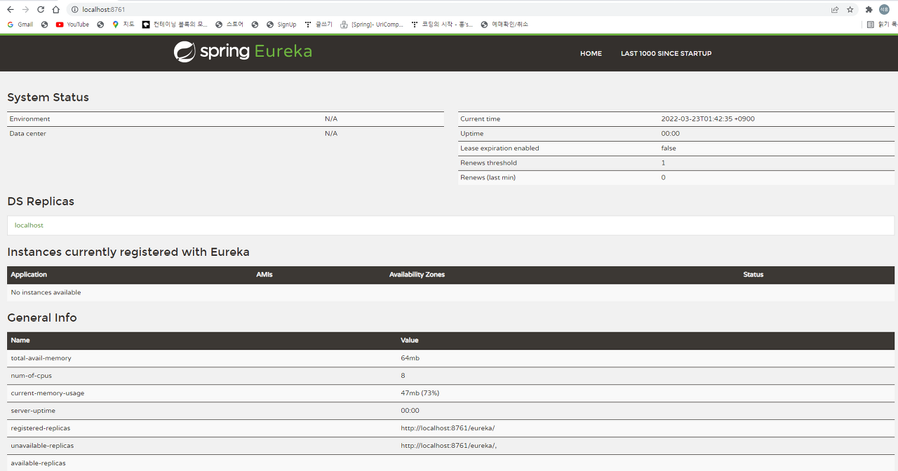 마이크로서비스A와 기타 서비스를 유레카에 등록해본다.