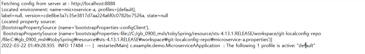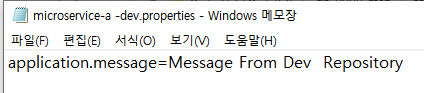 - 마이크로서비스-a에 서비스를 새로 만들어 애플리케이션 구서으이 일부 정보 리턴, 서비스로 스프링 클라우드 컨피그 서버에서 구성을 선택할 수 있는지 테스트