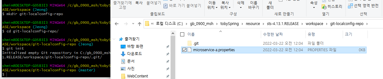 - 로컬 깃 레파지토리를 설정하고 스프링 클라우드 컨피그 서버에 연결