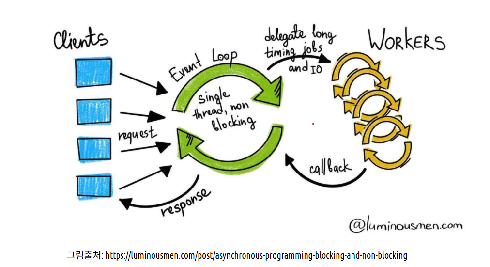 Event Loop는 각 Job을 제공자에게 요청한 후, 결과를 기다리지 않고 다른 Job을 처리한다.