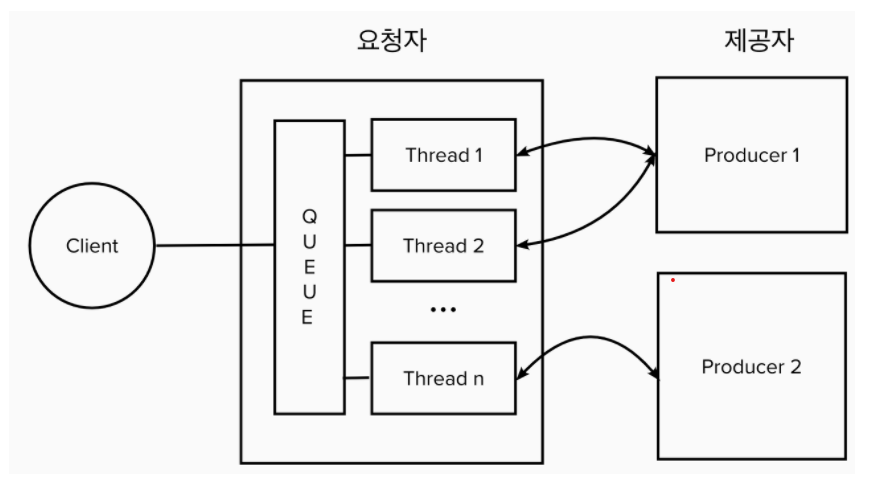 요청을 처리할 쓰레드가 있으면 아무런 문제가 없지만, 쓰레드가 다 차는 경우 이후의 요청은 Queue에 대기하게 된다.
