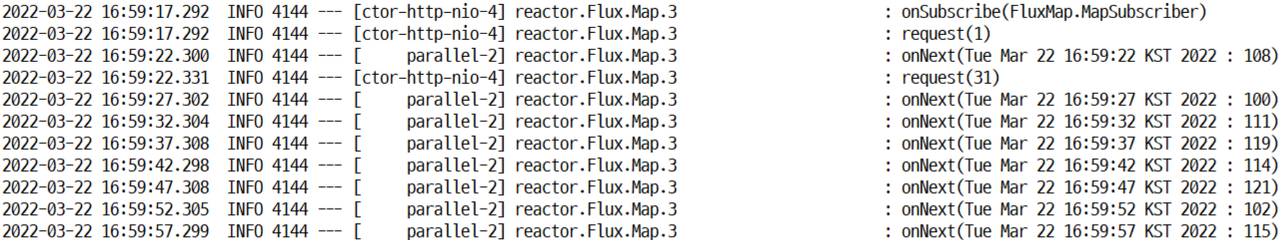 Subscriber가 Publisher에 Request하는 과정을 보통 Back-Pressure라고 표현하는데, Push하는 데이터(시퀀스)의 흐름을 제어할 수 있다. Request(1)을 호출하면 1개만 보내도록�요청할 수 있고, Request(MAX)를 호출하면 최대값에 해당하는 데이터를 요청.