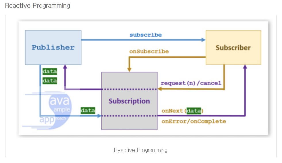 전달하기 전에 Publisher는 Subscribe에 정의된 onSubscribe()를 호출하고, Subscriber는 request(n)를 호출하여 몇 개의 데이터를 보내달라고 요청.
