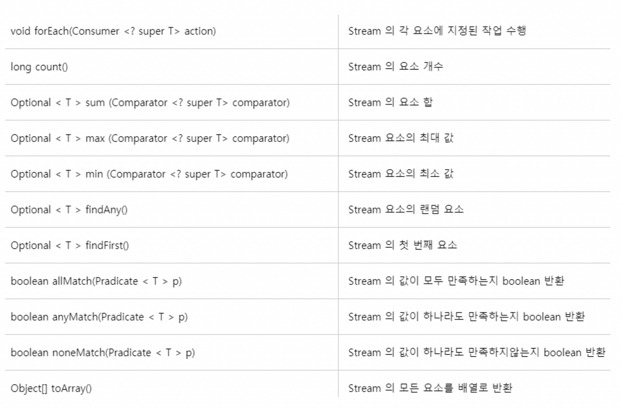 보통 최종 연산에 의해 List, Integer, void 등 스트림 이외의 결과가 반환된다.
