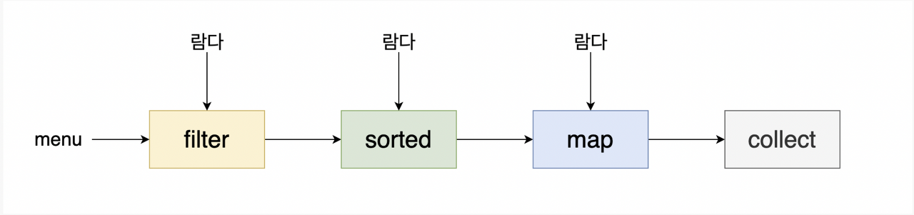 - 파이프라이닝 : 스트림 연산은 스트림 연산끼리 연결해서 커다란 파이프라인을 구성할 수 있도록 스트림 자신을 반환한다. 그 덕에 게으름(lazyness), 쇼트서킷(short-circuiting) 같은 최적화도 얻을 수 있다.