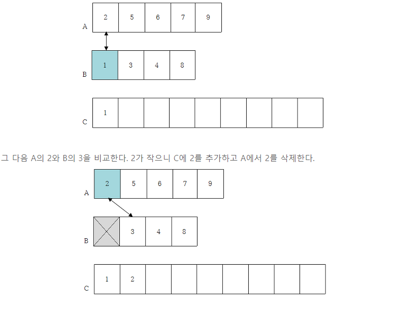 정렬하면서 합치는 방법 :
