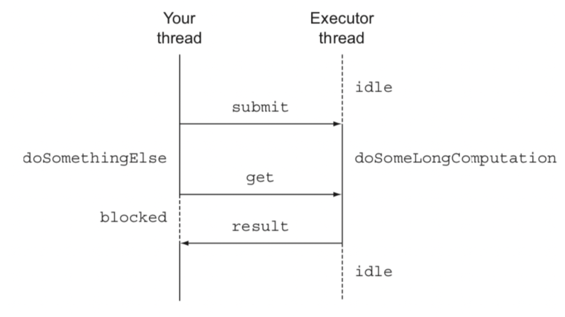 Future 이용시에는 시간이 오래걸리는 작업을 Callable 객체 내부로 감싼 다음 ExecutorService에 제출하면 된다.