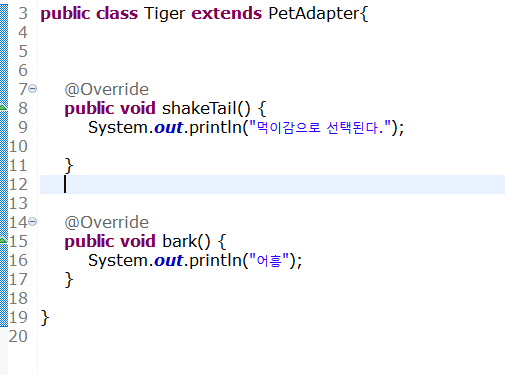 예를 들면 위의 Tiger클래스에서는 Pet의 인터페이스를 implements 할 수가 없습니다.