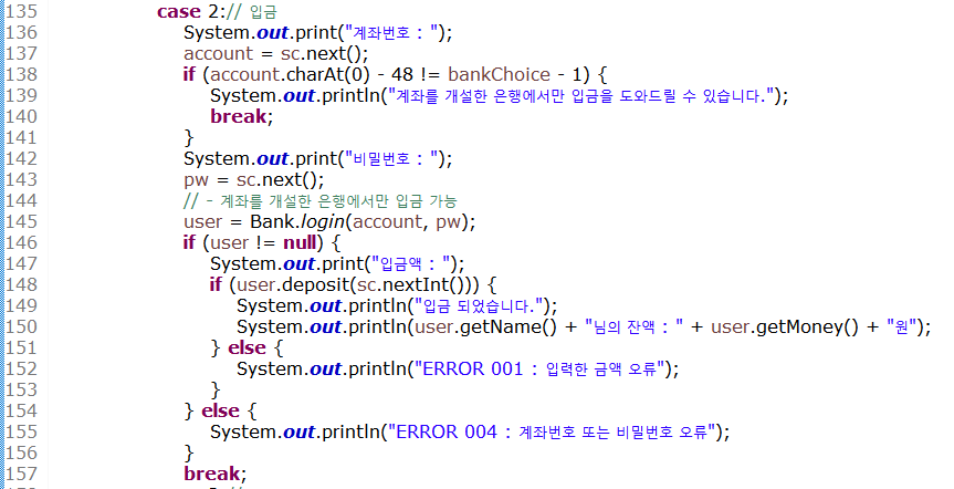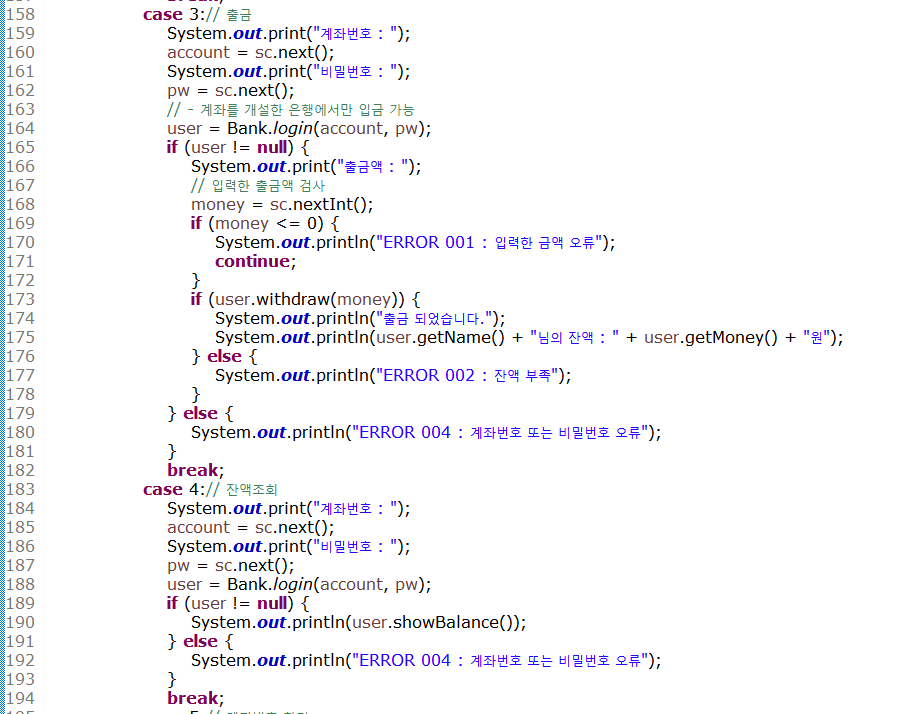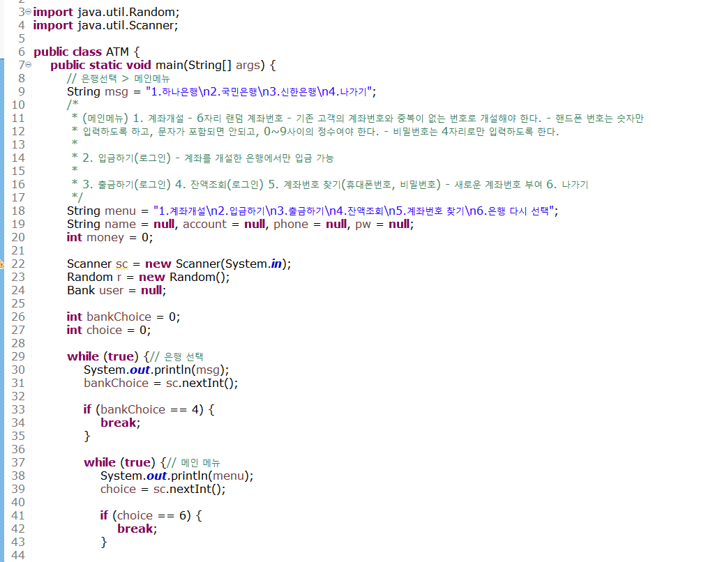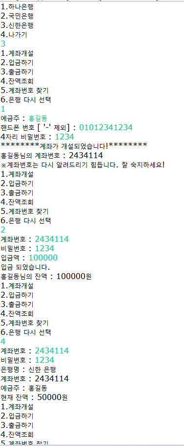 "1.하나은행\n2.국민은행\n3.신한은행\n4.나가기";