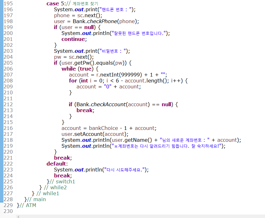 * 5. 계좌번호 찾기(휴대폰번호, 비밀번호)