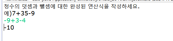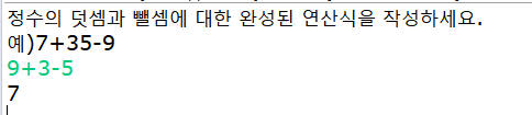 String msg = "정수의 덧셈과 뺄셈에 대한 완성된 연산식을 작성하세요.";