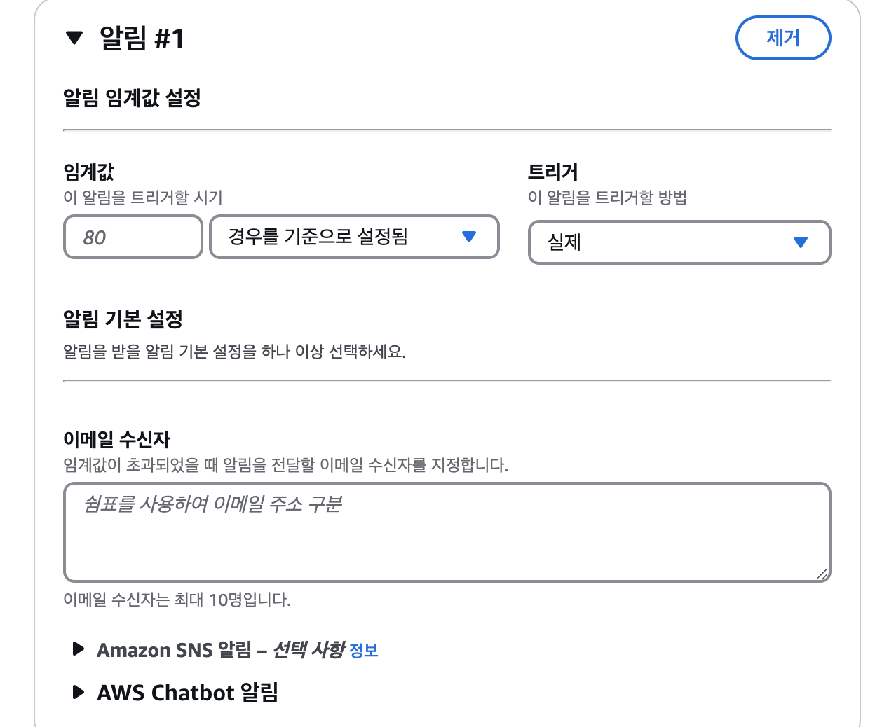 알림 임계값을 설정해 임계값이 넘었을 경우 이메일로 알림을 받을 수 있습니다.