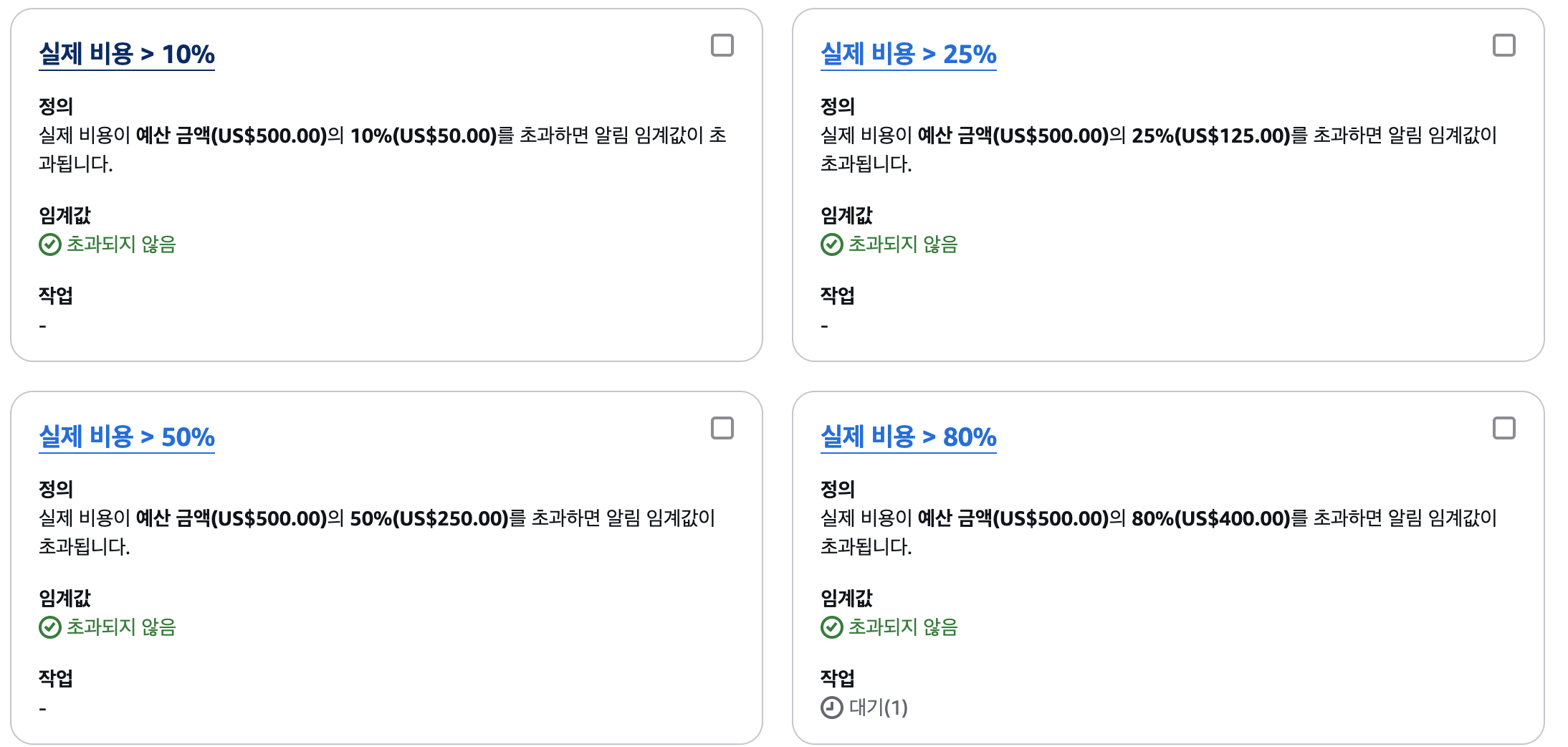 - 이를 방지하기 위해 Budgets를 사용할 수 있습니다.