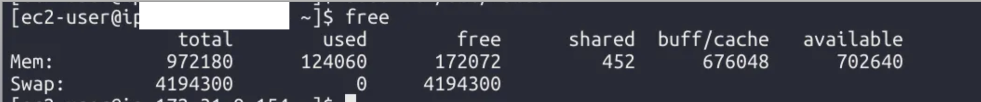 - swapon 명령어가 정상으로 동작했는지 확인한다.