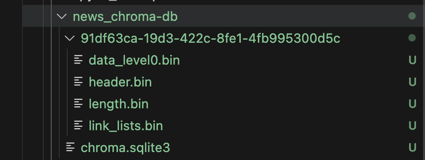 위 코드를 실행하면 chroma db가 파일로 저장되는것을 확인할 수 있다.