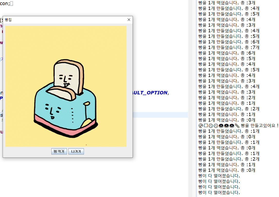 //빵을 다먹어서 남아있는빵이 0개이하면 빵을 만들고 있다 출력