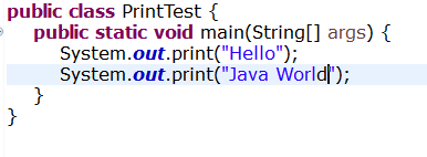 "Hello Java World" 를 한 줄로 쓰지 왜 두 줄로 나눈이유는!