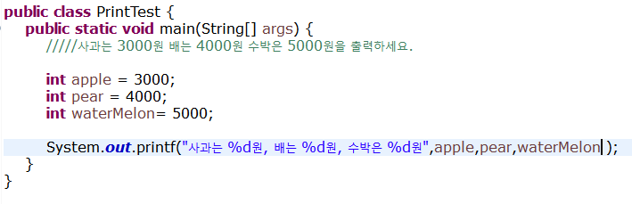 이것 또한 System.out.printf(); 이렇게 사용해주시면 됩니다.