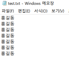 test.txt파일에 데이터를 쓸때는 write() 메소드를 사용합니다.