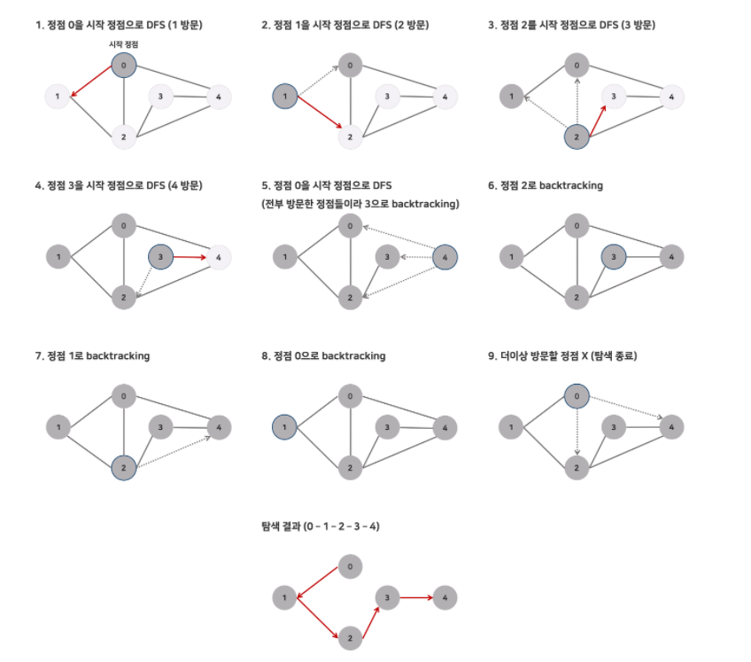 8번노드에서는 인접한 노드중 방문하지 않은 노드가 없으므로 backgracking을 합니다.