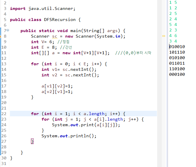 int[][] a = new int[V+1][V+1]; ///(0,0)부터 시작