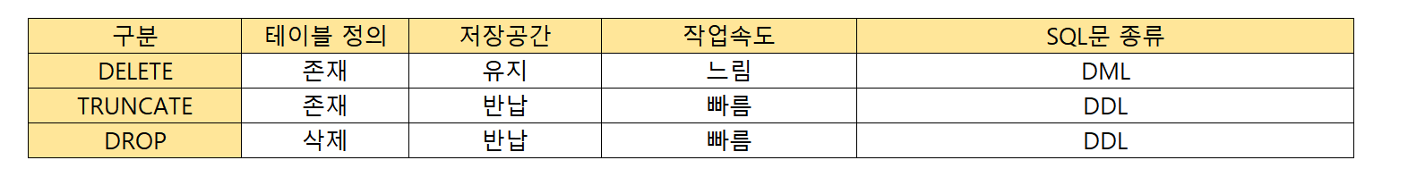 TRUNCATE, DROP, DELETE 차이