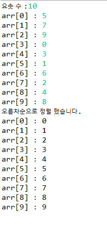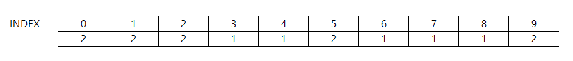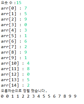출력결과 : 0 0 1 1 2 2 3 4 5 5 6 7 8 9 9