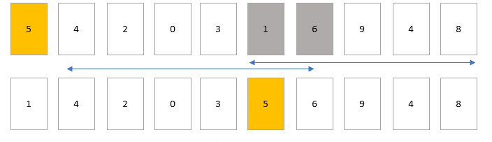이 경우에는 작은 데이터와 피벗의 위치를 서로 변경합니다.