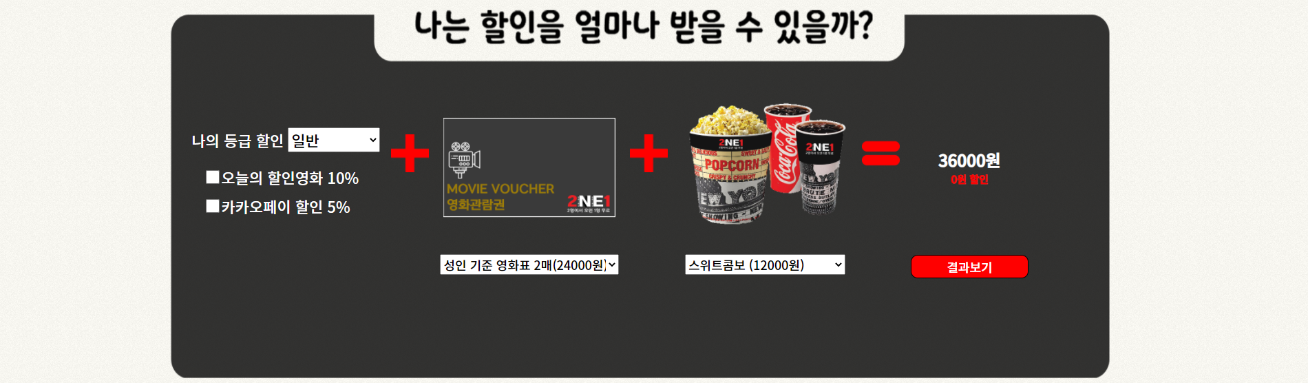 오늘의 할인 영화는 10% 중복으로 할인이 가능합니다.