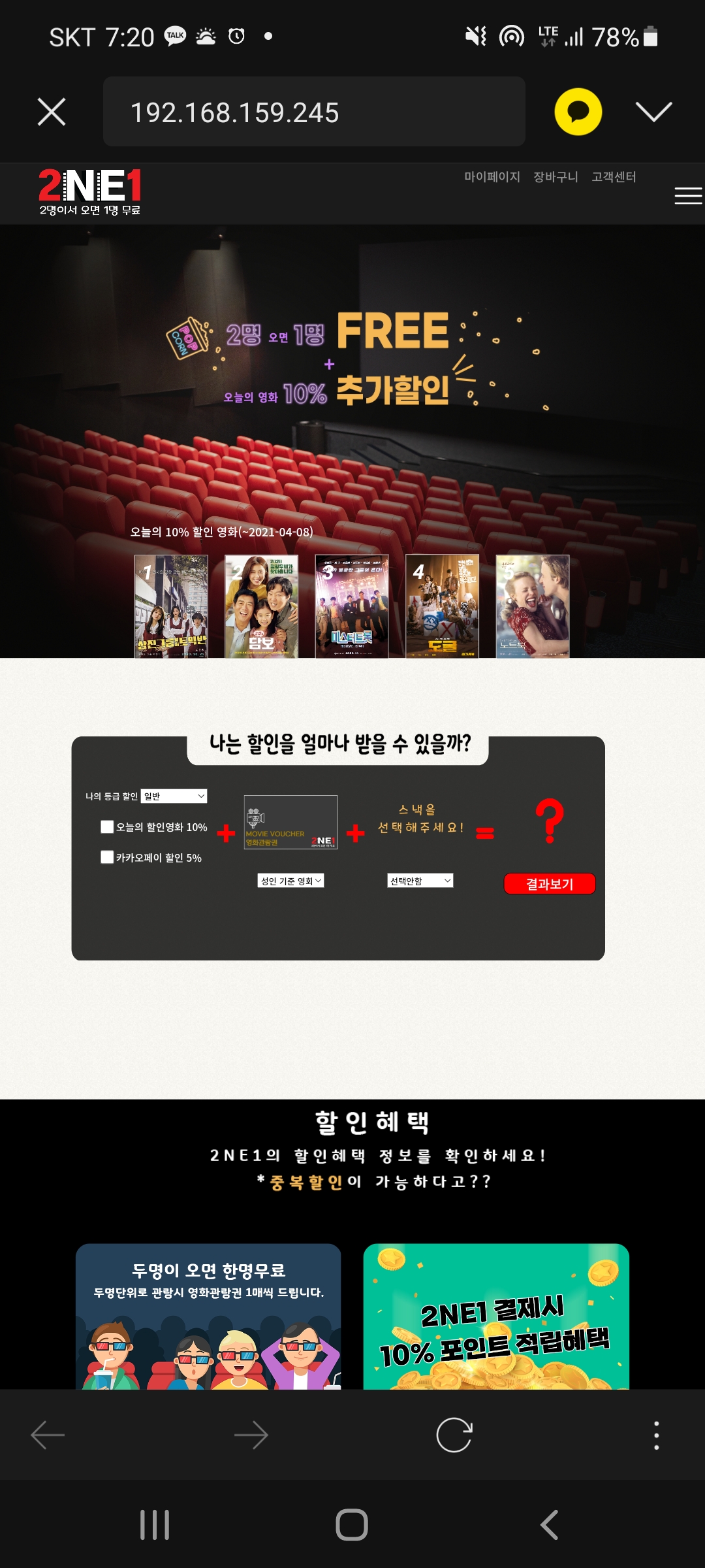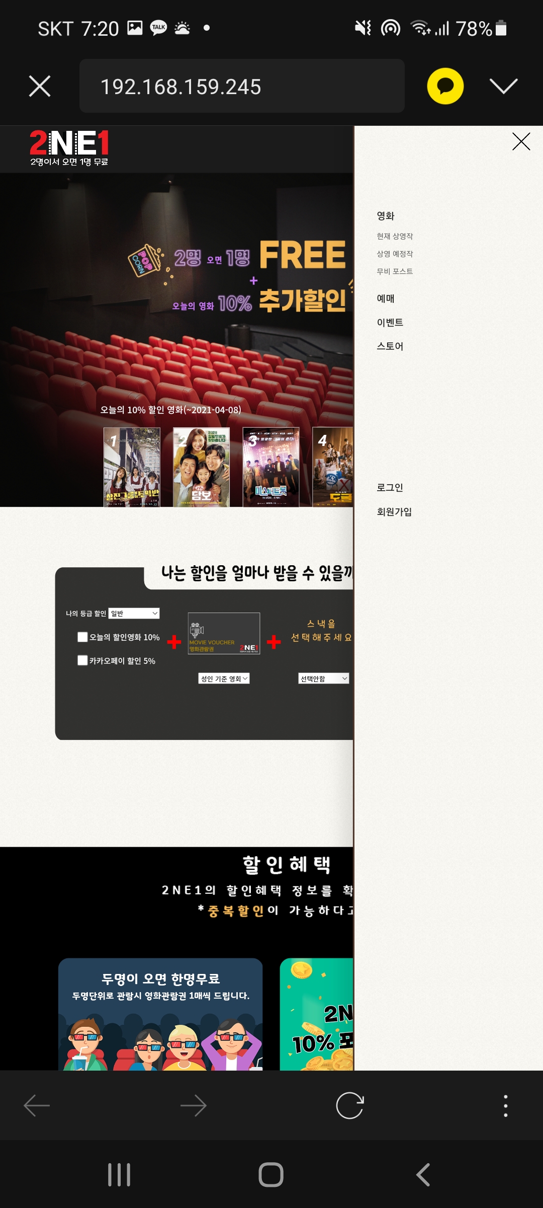 영화관 2NE1 을 반응형 웹으로 만들어 휴대폰에서도 볼 수 있게 만들었습니다.