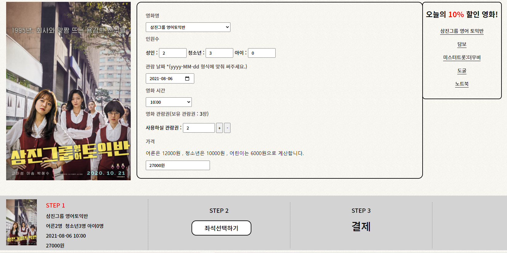영화 예매는 총 3가지 단계로 이루어 집니다.