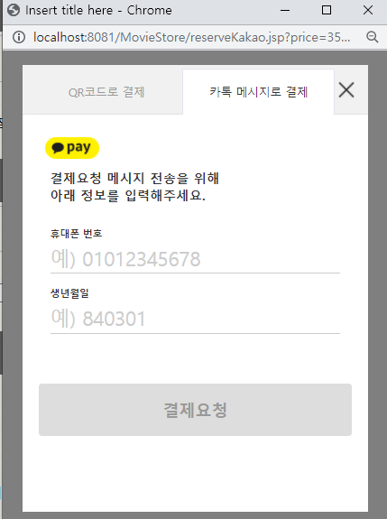 결제는 신용카드 결제/ 휴대폰 결제/ 카카오페이 세가지 종류가 있지만, 카카오페이로 결제를 해보겠습니다.