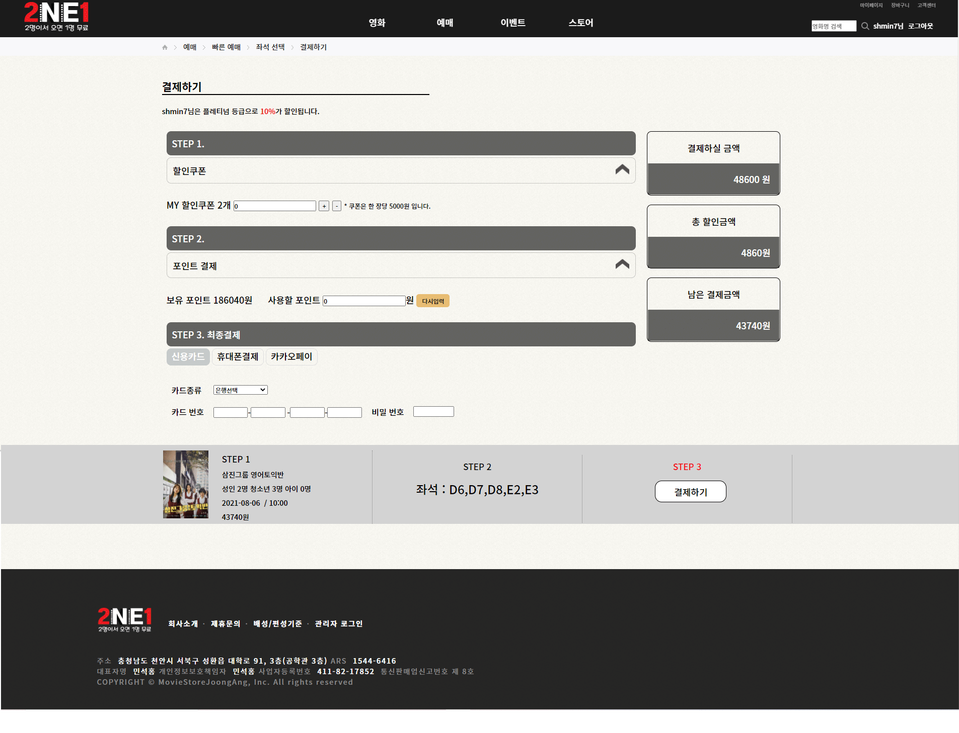 [영화관 2NE1] - 영화 예매