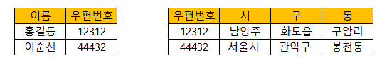 하나의 컬럼에 값이 1개씩만 있어야 합니다.